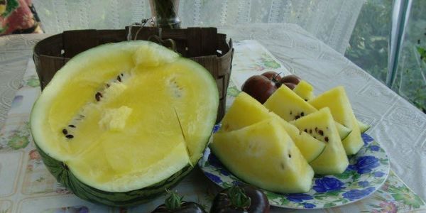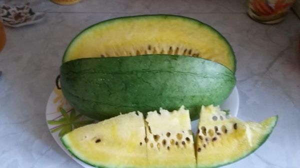 수박의 가장 큰 차이점은 색깔입니다. 과일 속의 특이한 색깔은 이 식물의 특징과는 전혀 다릅니다. 하지만 과육의 색깔이 영양가를 떨어뜨리지는 않습니다. 노란색 수박은 즙이 많고 달콤한 단맛이 납니다. 이 특이한 색깔의 열매의 가장 큰 특징은 씨가 전혀 없다는 것입니다.