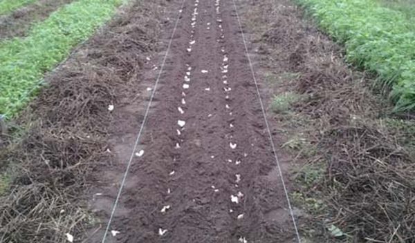 땅에 5~6cm 깊이의 넓은 고랑을 파고 준비한 마늘을 심은 후 흙으로 덮습니다. 심은 마늘의 윗부분은 부식토로 덮어도 됩니다. 그 후 관리는 봄 마늘과 동일합니다. 여름에 줄기가 자라면 마늘 5~6개를 남겨 두어 성숙을 관찰합니다. 작은 구근 마늘이 익어서 껍질이 터지면 마늘을 파낼 수 있습니다.