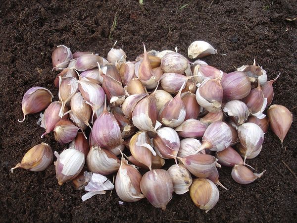 심기 전에 마늘을 쪽으로 분리해야 뿌리가 자라는 바닥이 마르지 않습니다. 구근 밖에서 자라는 큰 쪽만 심기에 적합합니다. 큰 구근을 키우는 데 필수적인 뿌리 발달을 촉진하기 위해, 선별된 쪽은 심기 전에 적절히 손질해야 합니다. 먼저 과망간산칼륨이나 재의 약한 용액에 2시간 동안 담가둡니다. 이렇게 하면 수분을 공급할 뿐만 아니라 심는 재료를 잠재적인 질병으로부터 보호할 수 있습니다. 그런 다음 쪽을 비닐 봉지에 담아 냉장고나 지하실에 며칠 동안 보관합니다. 심는 데 시간이 촉박하다면 용액에 6~8시간 정도 담가두면 됩니다. 니트로암모포스카 (5 g에 따뜻한 물 10리터).