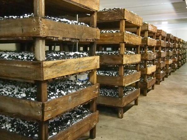 포르치니 버섯은 노지나 온실에서 재배할 수 있습니다. 균사체 재배가 가장 비용 효율적인 방법입니다. 이 경우 거의 모든 것이 재배자에게 달려 있습니다. 재배자는 온실에서 최적의 환경을 조성하고 유지합니다. 퇴비를 비료와 섞어 몇 주 동안 우려냅니다. 균사체를 첨가한 후, 버섯을 상자에 담아 선반에 놓습니다.