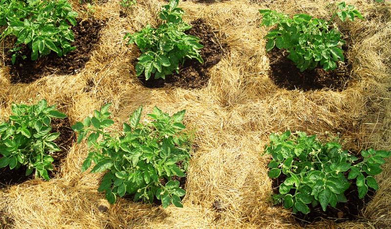 이 방법은 간단한 민간요법을 선호하는 정원사에게 어필할 것입니다. 덤불 주변의 흙에 짚을 뿌리기만 하면 잡초뿐만 아니라 콜로라도 딱정벌레도 잊어버릴 수 있습니다. 뿌리덮개 층은 딱정벌레가 가장 좋아하는 별미인 다른 곤충이 자랄 수 있는 유리한 환경을 조성합니다.