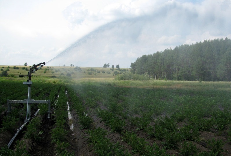 다양한 관개 시스템(스프링클러 방식)을 토양 표면 위 토지에 설치합니다. 또는 지면 바로 위에 격자 형태로 설치할 수도 있습니다. 지구 스프링클러 시스템은 개화 전과 개화 후 감자에 관개하는 데 적합합니다. 하지만 개화기에는 사용하지 않는 것이 좋습니다. 꽃가루가 씻겨 나가 수확량이 크게 감소할 수 있기 때문입니다.