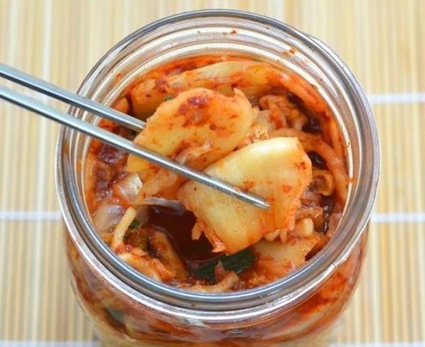 매콤하고 새콤한 배추는 명절 식탁에 단독으로 곁들이면 아주 맛있습니다. 감자, 밥, 죽과 함께 곁들이는 데도 자주 쓰이며, 요리 초보자도 쉽게 양념에 재울 수 있습니다.