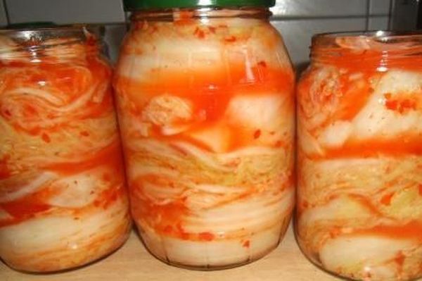 절인 배추는 새로운 풍미를 더합니다. 후추는 매콤하고 매콤한 맛을 더합니다. 이 애피타이저에는 양배추 1.5kg, 소금 500g, 청양고추 3개, 피망 150g, 고수와 생강 각 1큰술, 후춧가루 2g, 마늘 8~9쪽이 필요합니다.
