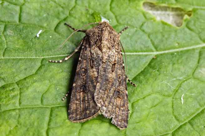 갈색 애벌레는 잎과 잎자루를 갉아먹고 뿌리 작물에 고르지 못한 통로를 만들어 수확물 전체를 망칠 수 있습니다.