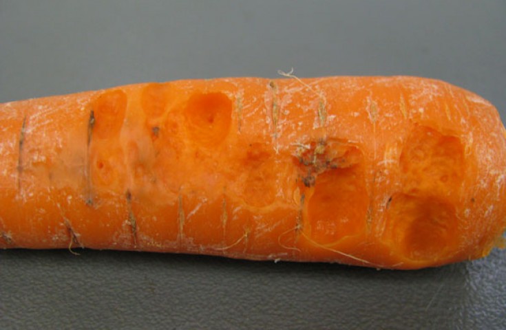 이 작고 밝은 색(약 15mm)의 벌레는 토양에 서식하며 뿌리채소를 손상시킵니다. 해충이 당근에 나타나면 뿌리에 여러 개의 굵기가 돋아나고, 그 안에 유충이 들어 있습니다. 감염된 뿌리는 발육이 미숙하여 식용으로 부적합합니다. 이 선충을 방제하는 유일한 방법은 살충제로 토양을 소독하는 것입니다. 감염된 식물은 흙덩어리와 함께 파내어 소각해야 합니다.