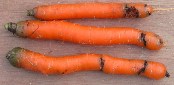 묘목이 나온 직후부터 크고 밝은 갈색의 곤충(5mm)이 당근을 망치기 시작합니다. 이때쯤이면 해충 유충이 이미 나타나 뿌리 작물의 깊은 통로를 갉아먹고 있기 때문입니다.