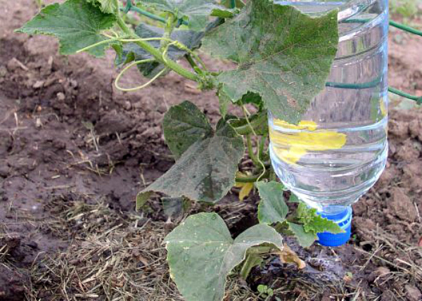 점적 관개 시스템은 노지에서 효과가 입증되었습니다. 직접 만들 수도 있습니다. 2리터 플라스틱 병을 사용하면 됩니다. 뜨거운 못으로 구멍을 뚫은 후, 병을 거꾸로 땅에 묻으세요. 병에는 항상 물이 채워져 있는지 확인하세요.