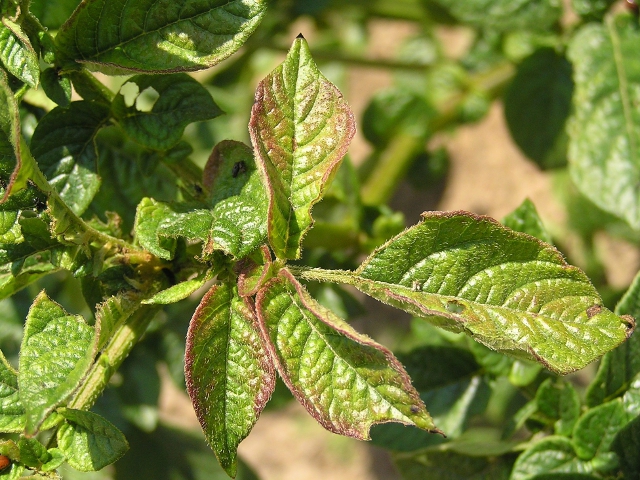 스톨부르(stolbur)라고도 불리는 이 병은 해충(총채벌레, 다양한 진딧물, 응애)에 의해 전파되는 마이토플라스마(mytoplasmas)라는 작은 유기체에 의해 발생합니다. 먼저 정단부 잎이 말리기 시작하고 말라 죽으면서 식물 전체로 확산됩니다. 묘목에서 발병하면 식물이 작고 뒤틀리게 자라 수확할 수 없게 됩니다. 따라서 식물은 제거해야 합니다.