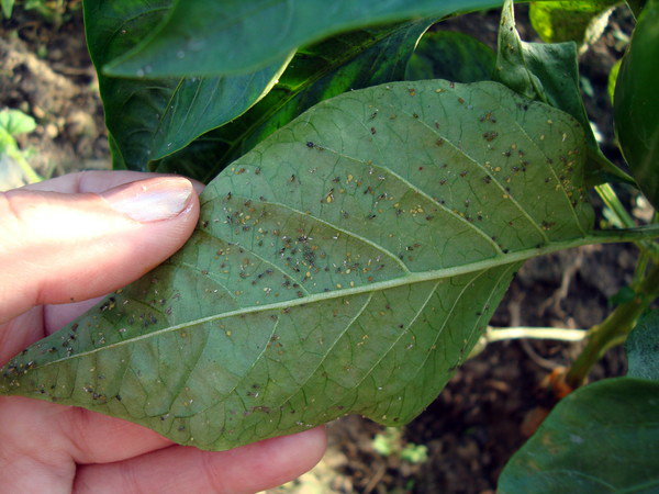 고추는 진딧물에 자주 감염되는 채소 작물입니다. 잎에는 수액이 풍부하여 진딧물이 좋아하는 작물입니다. 진딧물의 활동으로 인해 잎은 점차 오그라들고 결국 말라 죽습니다. 시들음은 잎 끝에서부터 시작됩니다. 다른 징후로는 녹색 잎에 미세한 감로가 형성되는 것이 있습니다. 이 감로는 진딧물이 분비하는 것으로 진딧물 활동의 부산물입니다. 진딧물의 배설물 때문에 잎은 만지면 끈적거리고, 햇빛에 노출되면 윤기가 납니다.