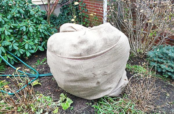 특히 우랄 산맥과 시베리아처럼 겨울이 혹독한 지역에서 식물을 재배할 때는 손으로 싹을 모아 밧줄로 묶어 식물을 안전하게 보호하는 것이 중요합니다. 가로와 세로 모두 10~15cm 정도 큰 금속 망사 원통을 관목 위에 만듭니다. 남은 공간은 해당 지역의 마른 잎으로 채웁니다. 원통을 관목 위에 만든 후에는 두꺼운 천으로 감싸고 철사나 밧줄로 고정하여 바람이나 눈이 구조물을 손상시키지 않도록 합니다.