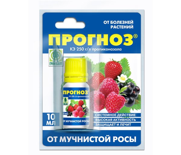 "Prognoz"라는 약물은 반점병, 딱지병, 흰가루병을 일으키는 병원균을 퇴치하는 데 사용됩니다.