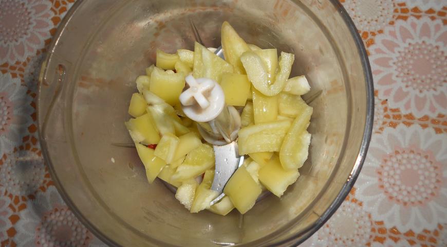 - 달콤한 고추 500g, 붉은 토마토 720g, 칠리 180g, 마늘 몇 개를 고기 분쇄기로 갈아줍니다.
