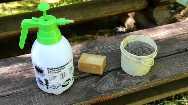- 많은 정원사들의 실제 경험은 세탁 세제를 기반으로 한 용액의 효과를 보여줍니다. 직접 만들려면 물 한 통에 세제 300g을 넣으세요. 먼저 세제를 잘게 부숴야 합니다.