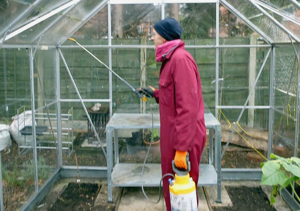 온실 자체의 경우, 토마토 모종을 심기 전에 위생 소독을 하는 것이 좋습니다. 먼저 벽과 지붕을 모두 씻어 먼지와 거미줄을 제거하고, 지난 시즌에 발생한 식물 잔해물을 제거합니다. 온실을 1% 과망간산칼륨 용액과 소량의 표백제로 세척하면 효과적입니다.