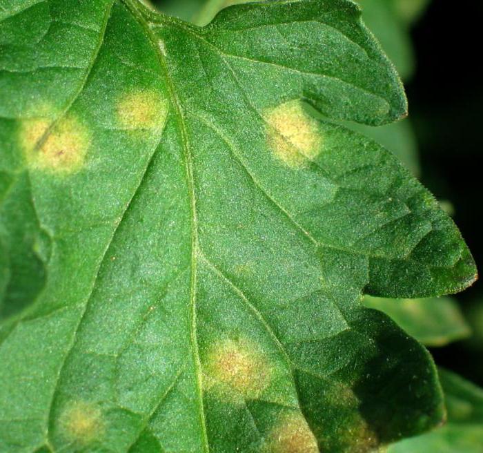 정원에서 갈색 반점을 식별하는 것은 비교적 쉽습니다. 주요 증상은 토마토 잎에 전형적인 반점이 나타나는 것입니다. 이 병은 온실의 높은 습도와 온도로 인해 발생하며, 빠르게 확산됩니다.