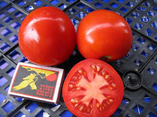 이 덤불은 최대 50cm까지 자랄 수 있습니다. 붉은 토마토를 수확합니다. 두꺼운 껍질로 싸여 있어 갈라짐을 방지하고 운송에도 잘 견딥니다. 평균 무게는 약 120g입니다. 토마토는 통조림으로 만들기에 아주 좋습니다.