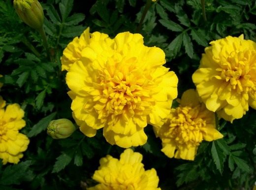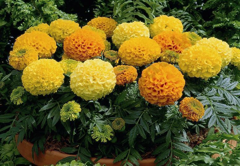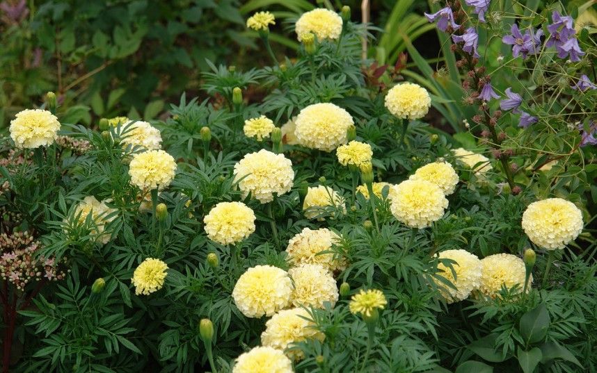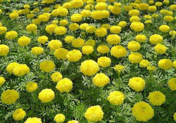 - 레몬 퀸. 밝고 균일한 레몬색의 겹꽃이 무성하게 피는 금잔화입니다. 꽃봉오리는 지름 8~10cm이며, 여름 후반기에 절정에 달합니다.