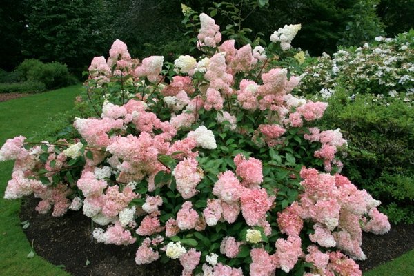 중부와 북부 지역에서 자라는 수국은 겨울 동안 단열 처리되어 있습니다. 수풀의 아랫부분은 토탄, 부식질, 마른 낙엽, 건초로 덮여 있고, 윗부분은 소나무 가지나 농용 섬유로 덮여 있습니다.