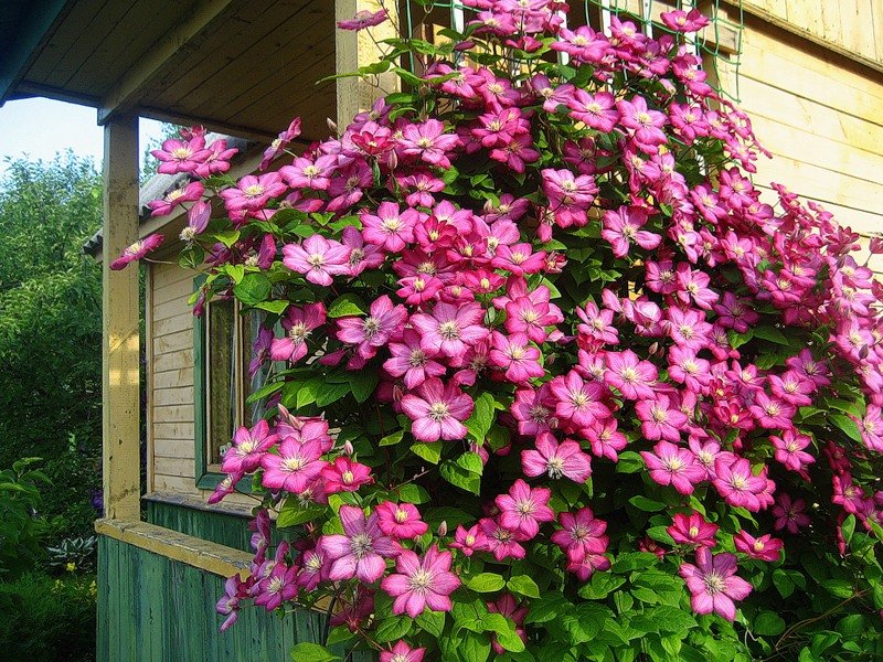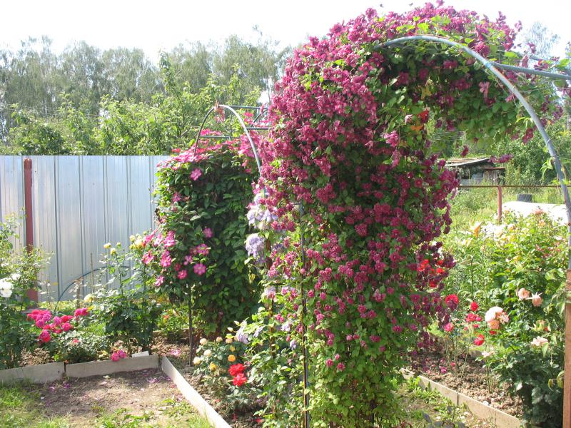 몇 년 전, 정원 정자 근처에 빌 드 리옹이라는 클레마티스 묘목을 심었습니다. 그 식물은 금세 뿌리를 내리고 왕성하게 자라기 시작했습니다. 시간이 흐르면서 덩굴처럼 뻗은 그 관목은 우리 정자를 정원의 하이라이트로 만들어 주었습니다.