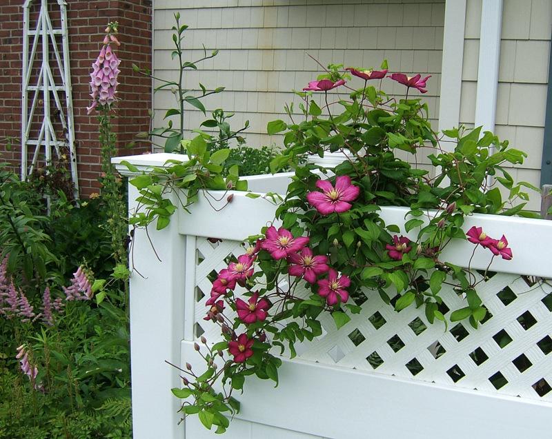 클레마티스의 가장 좋은 "이웃"은 덩굴장미, 데이릴리, 백합, 개나리, 모란, 재스민, 가막살나무, 스피레아, 처녀포도나무, 심지어 침엽수입니다.