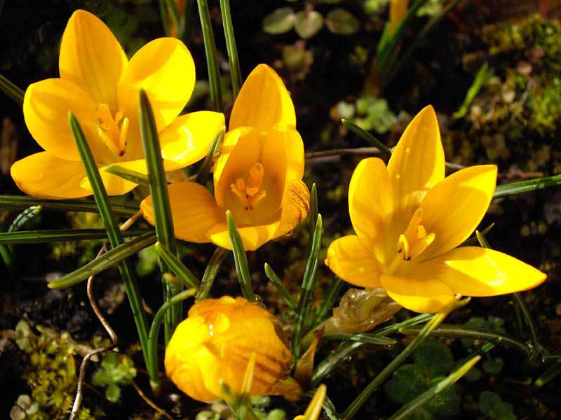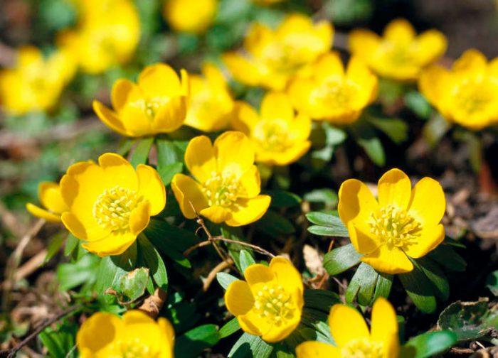 가장 일찍 피는 꽃으로, 눈에도 강합니다. 2월 말에서 3월 초에 핍니다. 꽃봉오리는 선명한 노란색이며, 거의 항상 꽃잎이 여섯 개입니다. 빠르게 자라며, 높이 10cm 정도의 일종의 "카펫"을 형성합니다.