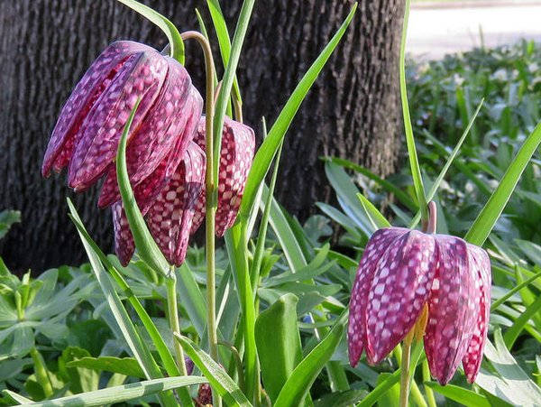 패모과에 속하는 키가 작은 식물로, 키가 0.2m에 불과합니다. 늘어진 꽃봉오리는 종 모양을 하고 있습니다. 꽃잎은 라일락빛이 도는 보라색이며, 크고 눈처럼 하얀 반점이 있습니다. 4월 말이나 5월 초에 꽃이 핍니다.