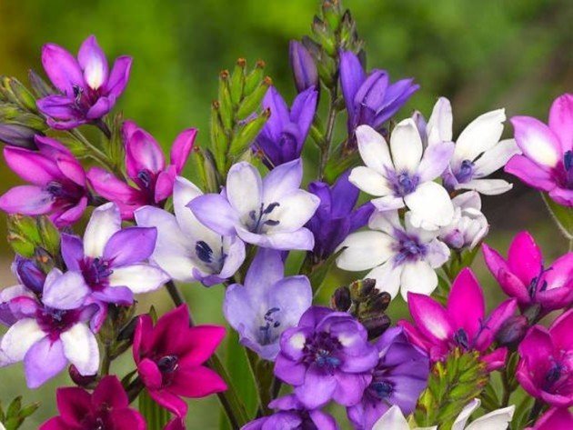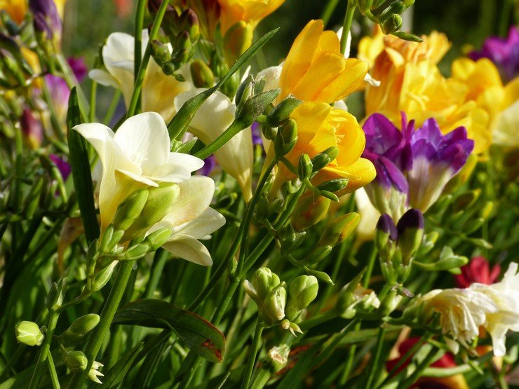 다양한 품종을 가진 또 다른 다년생 식물입니다. 다양한 색상과 줄기 높이(30cm에서 1m)를 자랑합니다. 프리지아는 7월 중순부터 8월 둘째 주 열흘까지 꽃을 피웁니다.