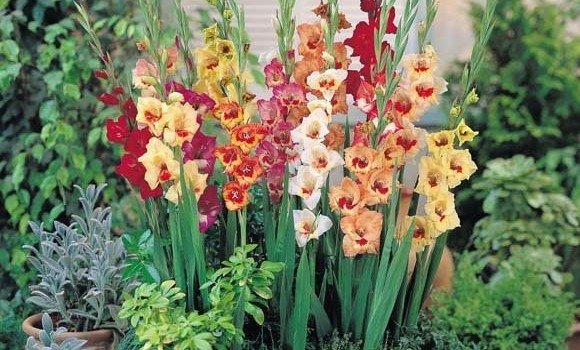 육종가들 덕분에 최근 글라디올러스의 소형 품종인 글라미니가 개발되었습니다. 이 품종은 키가 0.5m를 넘지 않아 바람에 더 강합니다. 꽃은 7월 말이나 8월 초에 일찍 핍니다.