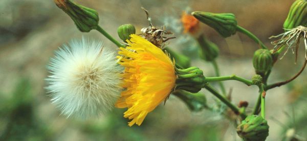 꽃은 6월부터 10월까지 핍니다. 이 기간 동안 약 2만 개의 씨앗이 형성되어 바람에 쉽게 날아갑니다. 또한, 이 식물은 영양생장도 활발하여 땅에 남겨진 뿌리줄기는 한 달 안에 새순을 낼 수 있습니다.