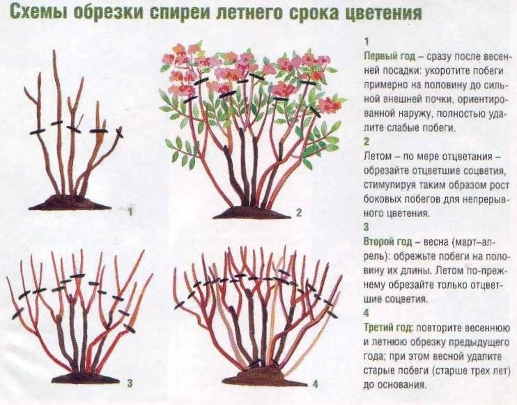 여름 꽃이 피는 품종인 스피레아 빌라르디아나는 서리가 내리기 1.5~2주 전 가을에 가지치기를 해야 합니다. 늙고 말라붙어 손상된 가지를 땅바닥까지 잘라냅니다. 건강한 가지는 3분의 1 정도 짧게 자릅니다. 가지치기 후 관목의 윗부분은 반구형으로 변합니다.