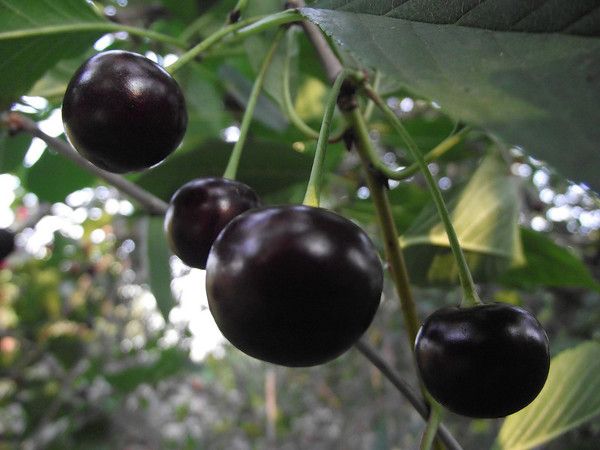 익은 열매는 체리를 닮아 매우 매력적입니다. 껍질은 검은색이고 짙은 적갈색 맥이 있습니다. 체리 자체는 크고(4.5~5g) 둥글거나 약간 길쭉하며, 측면은 납작합니다. 과육은 조밀하고 육질이 풍부하며, 진한 적갈색을 띠고 단맛(최대 12%)이 강하며, 이 품종의 특징인 은은하고 거의 느껴지지 않는 신맛이 남습니다. 씨는 작고 쉽게 분리됩니다. 체리는 어떤 가공에도 적합하지만, 특히 생과즙이 맛있고 영양가가 높은 것으로 알려져 있습니다.