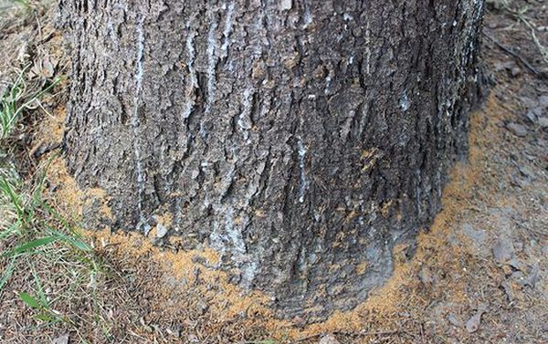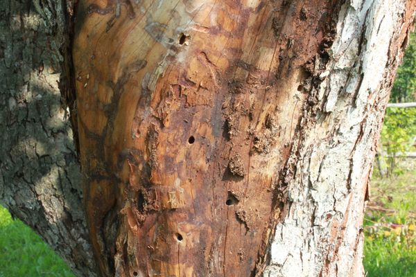 감염된 사과나무에 대한 나무껍질좀 방제는 즉시 시작해야 합니다. 해충의 존재를, 가급적이면 가능한 한 빨리 알아차리는 것이 중요합니다. 이는 나무껍질좀과 유충이 나무를 갉아먹으면서 배출하는 소량의 미세한 나무가루(톱밥)로 알 수 있습니다. 이 톱밥의 색깔은 감염 정도를 판단하는 데 사용할 수 있습니다. 갈색이고 다소 어두운 색이면 피해가 나무껍질 아래 윗부분 조직에 국한된 것입니다. 흰색 나무가루는 해충이 나무껍질의 일부를 갉아먹었음을 나타내며, 나무줄기에 심각하고 깊은 손상이 있음을 나타냅니다. 일반적으로 흰색 톱밥이 나타나면 감염의 징후이므로 나무는 가능한 한 빨리 제거해야 합니다.