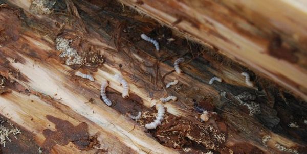 얼마 후, 알에서 부화한 유충은 눈이나 다리는 없지만 강력한 턱을 가진 작고 하얀 벌레로, 나무를 갉아먹습니다. 이듬해 봄까지 거의 1년 동안 유충은 나무의 수액과 연조직을 먹습니다. 봄이 되면 유충은 딱정벌레로 변태하여 우화하여 개체 수를 늘리고 확산시킵니다.